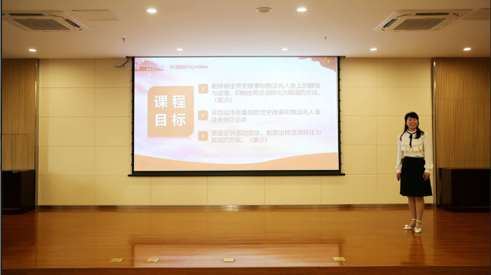 思政組古來婷老師在進(jìn)行無學(xué)生教學(xué)展示