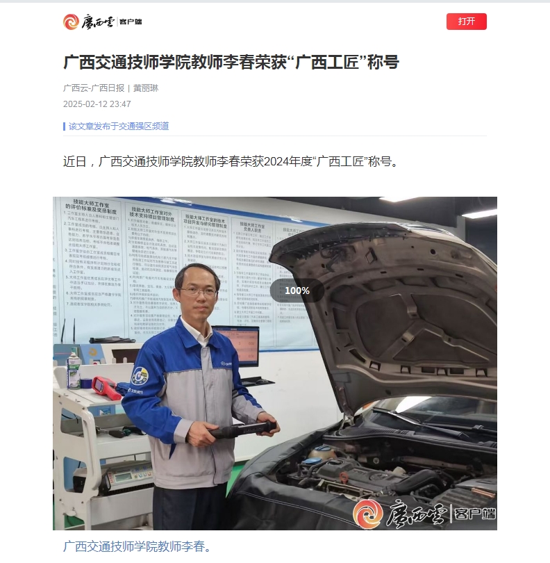 廣西交通技師學(xué)院教師李春榮獲“廣西工匠”稱號